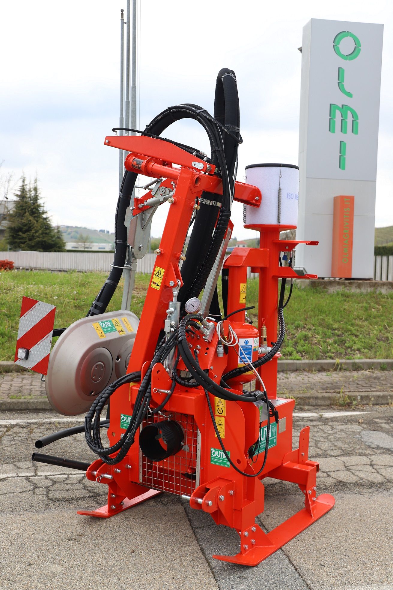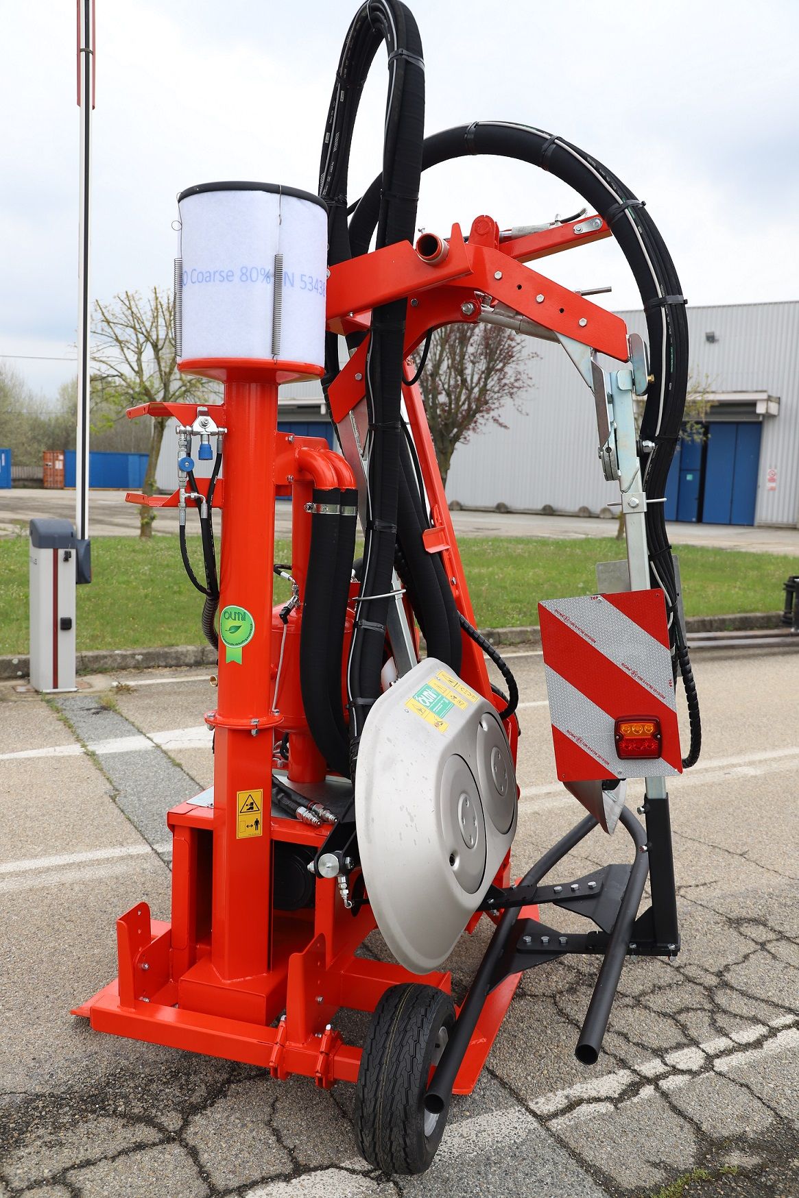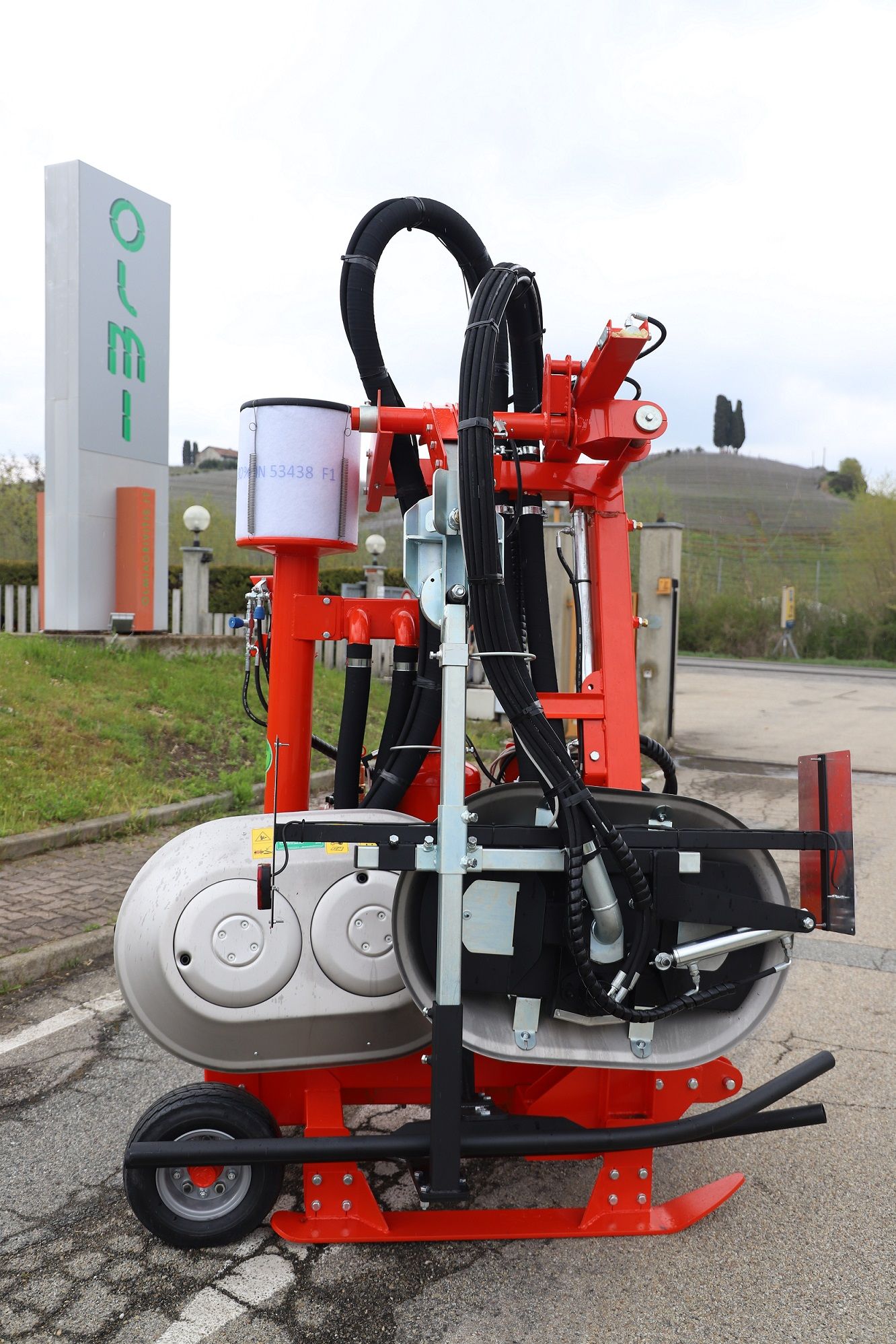 Pneumatischer Entlauber mit 2 hinteren und Überzeiligen Köpfe, Arbeit auf einer kompletten Riehe, Kompressor, Schwenkbarer Rahmen, mit Selbstzentrierung auf der Reihe, 3 Hydraulische Bewegungen mit Elektrohydraulischer Joystick, Stutzschlitten, 30° Rahmen Neigung, 3 Punkte Anschluss hinten am Traktor.