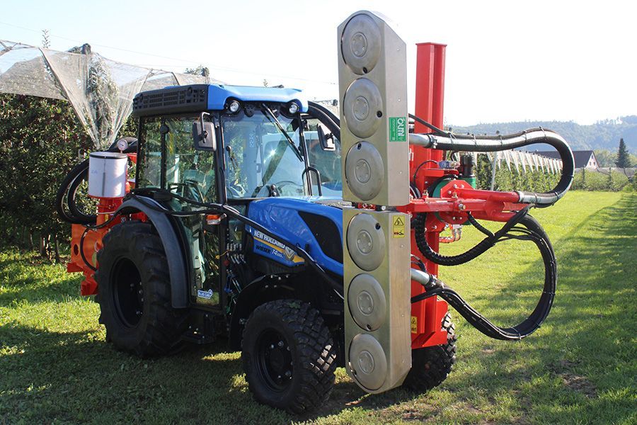 Cette technologie est caractérisée par l’émission d’un flux d’air intermittent à pression variable, qui sort par un système des disques rotatifs. L’effeuilleuse VORTEX élimine sélectivement les feuilles et permet d’améliorer considérablement l’exposition solaire, augmentant la coloration en particulier sur les variétés rouges, telles que : Pink Lady Fuji, Gala, Kanzi, Ambrosia, Rosy Glow ecc…